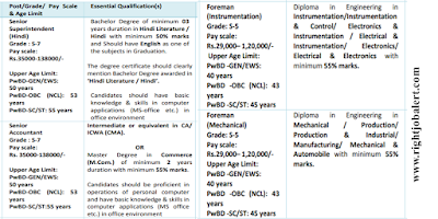 Senior Superintendent - Hindi,Senior Accountant,Senior Superintendent - HR,Senior Chemist and Foreman - Electrical/Instrumentation/Mechanical Job Description :